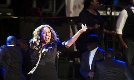 The crowd waited for her to catch her breath before she launched into Dreamlover (1993), recorded at a time when much was being made of Carey's five-octave vocal range. She still has it. Her voice peaked, swooped, and made you listen (despite sound problems that had the speakers crackling).